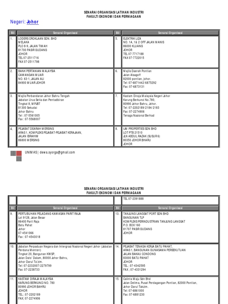 Senarai Syarikat Latihan Industri Pdf