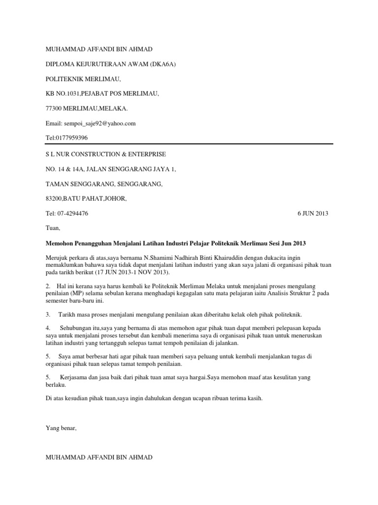 Our establishment is designed to produce highly skilled workforce to meet and support. Internship latihan industri jobs in Malacca - October. Sonny Kurnia 129 downloads.