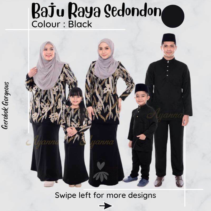 Baju Raya Sedondon Tema Warna Black Hitam Set Family Ayah Ibu Anak Baju Kurung Baju Melayu Kurta Rayafr Shopee Malaysia